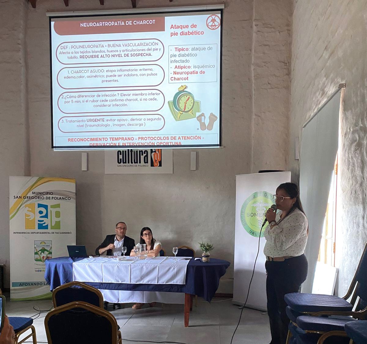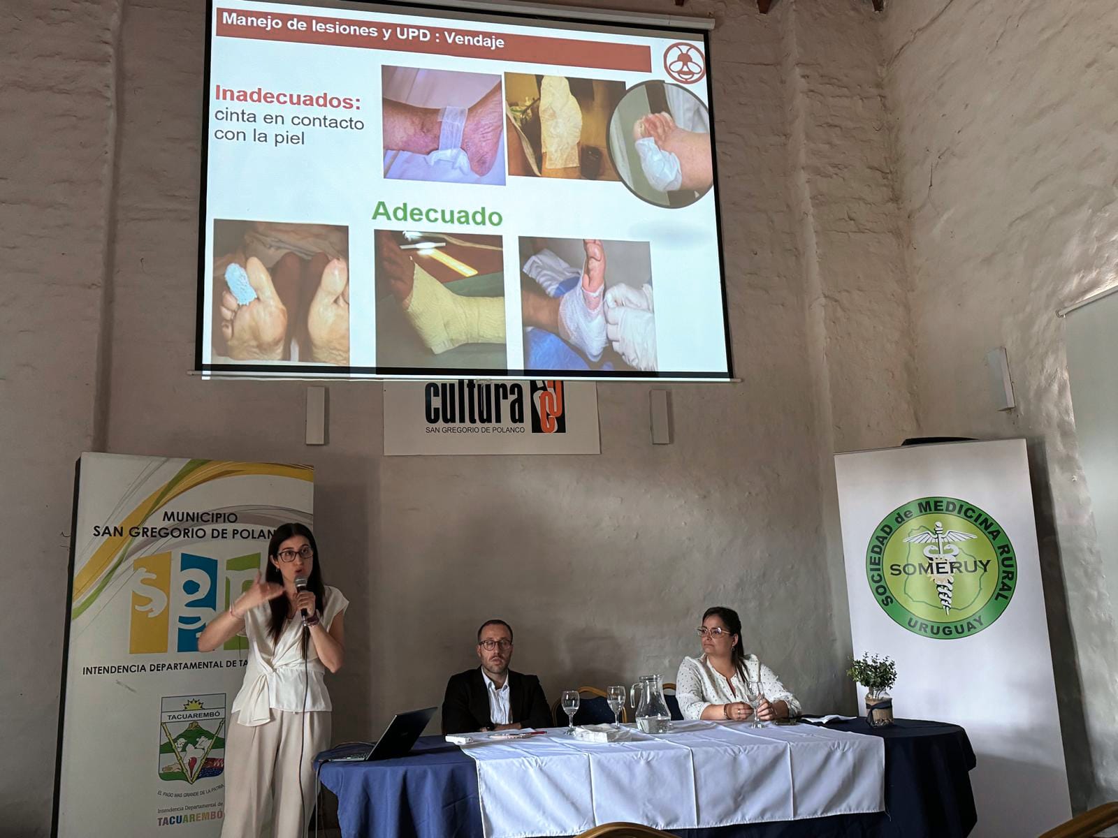 El pasado 30/11/2024 Integrantes del Comité de Pie Diabético: Dra Burruso G, Dra Claro A. Dr Dos Santos E. de nuestra Sociedad, participaron con el tema " Manejo de pie diabético " en la XXII Jornada de Actualización en Medicina y XII Enfermería rural por parte de la Sociedad de Medicina Rural del Uruguay (SOMERUY)La cual se llevó a cabo en San gregorio de Polanco departamento de Tacuarembo, Uruguay.